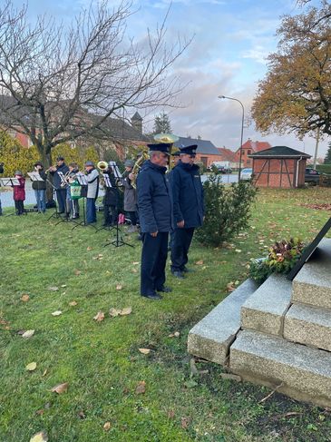 Die Kameraden der Freiwilligen Feuerwehr haben anlässlich des Volkstrauertages einen Kranz am Denkmal zur Erinnerung an die Gefallenen der beiden Weltkriege niedergelegt.