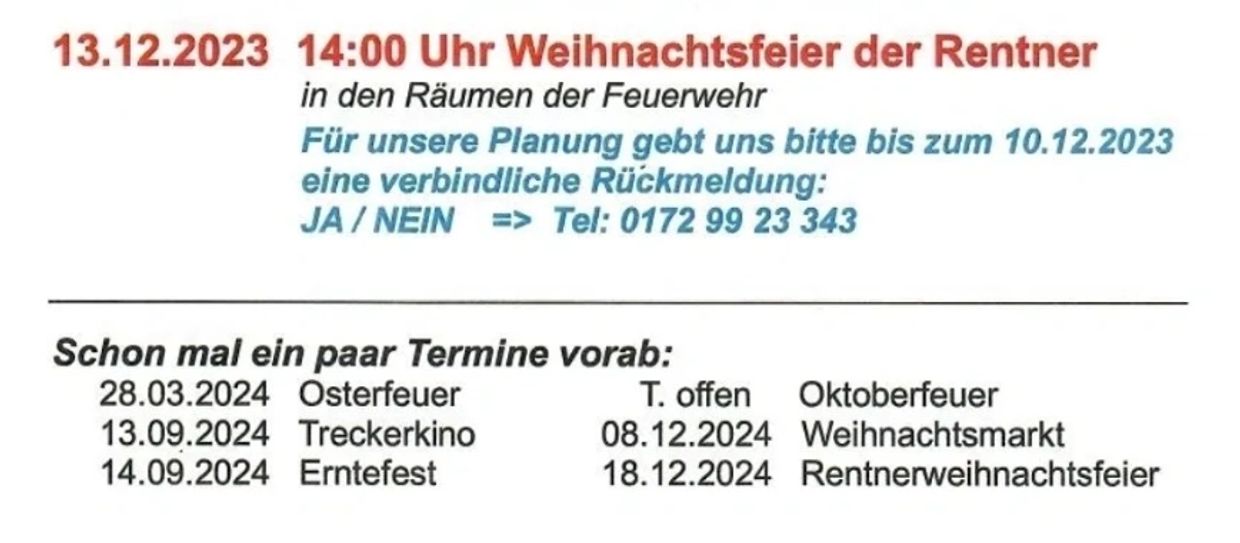 Auf Grund des herrlichen Regenwetters wurde Weihnachten in den Räumen der Feuerwehr gefeiert.