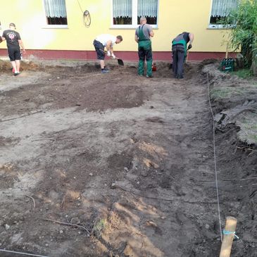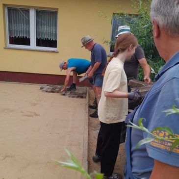 Damit auch in Zukunft optimal gefeiert werden kann, sind die fleißigen und freiwilligen Feuerwehrmänner dabei, den Grillplatz hinter der Feuerwehr neu zu befestigen.