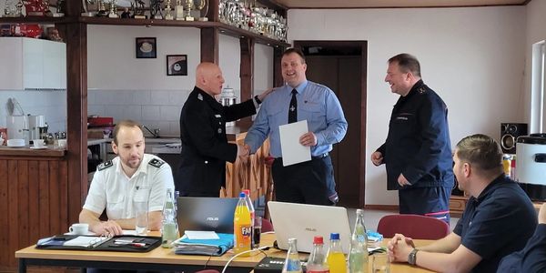 In lockerer Atmosphäre haben die 'alten' den Staffelstab an die 'jungen' Feuerwehrmänner übergeben . Dietmar Borchert an Jörn Reichler als Wehrführer und Norbert Glowik an Marius Hitscher als Stellvertreter. Danke an alle! Es ist beruhigend zu wissen, das Ihr einsatzbereit seid!